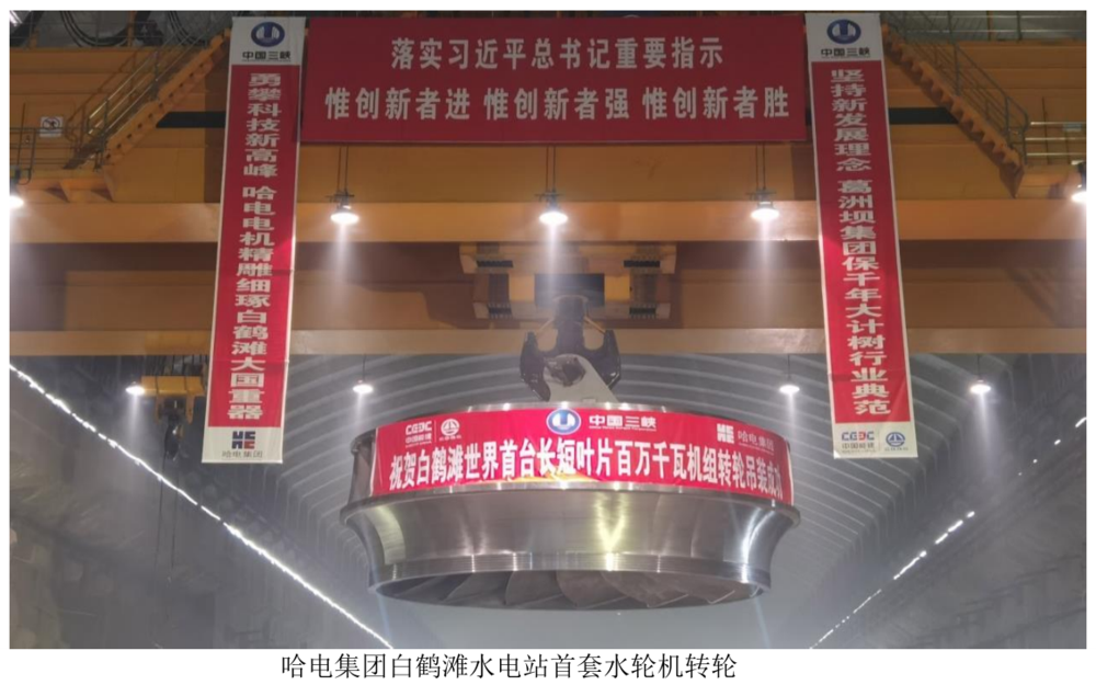 白鶴灘水電站是全球單機(jī)容量最大、在建規(guī)模最大的水電站,是開發(fā)和治理長江上游的重要水電工程,是國家能源戰(zhàn)略布局“西電東送”的骨干電源點(diǎn),是長江防洪體系的重要組成部分,該工程由三峽集團(tuán)建設(shè)并管理。水電站裝機(jī)總?cè)萘?1600萬千瓦,左右兩岸共安裝 16 臺(tái) 100 萬千瓦水電機(jī)組,右岸 8 臺(tái) 100 萬千瓦機(jī)組由哈電集團(tuán)研制,左岸 8 臺(tái) 100 萬千瓦機(jī)組由東方電氣研制。